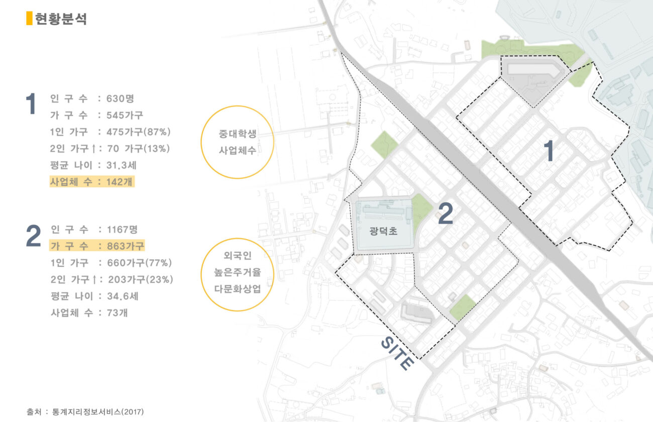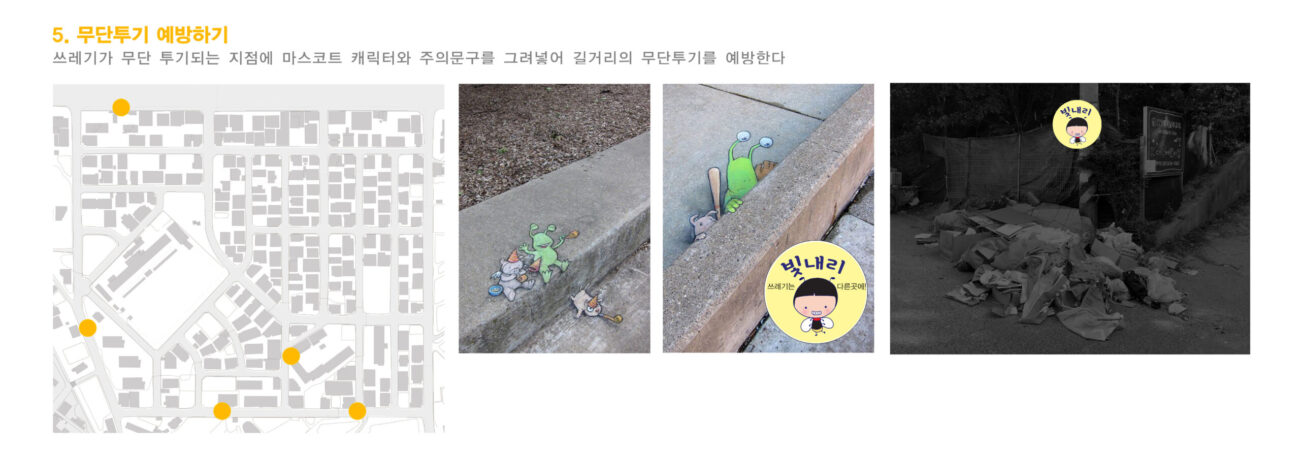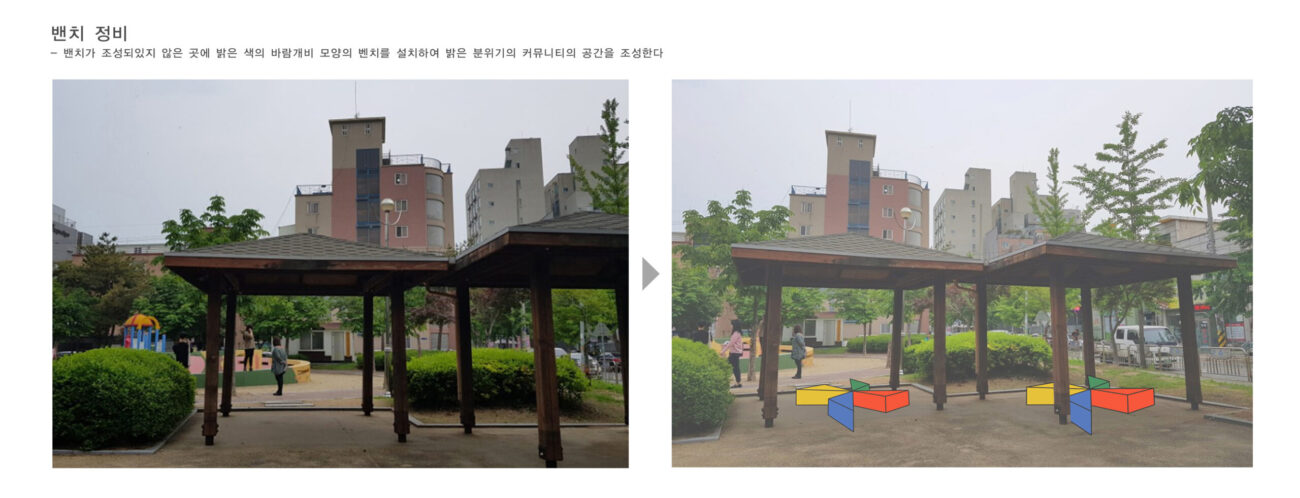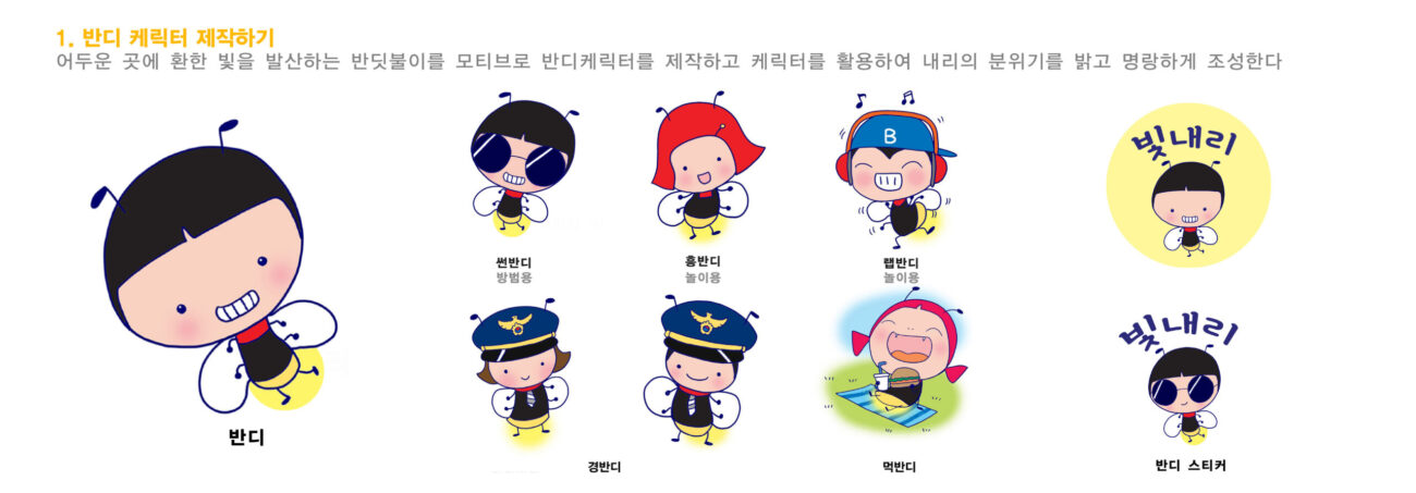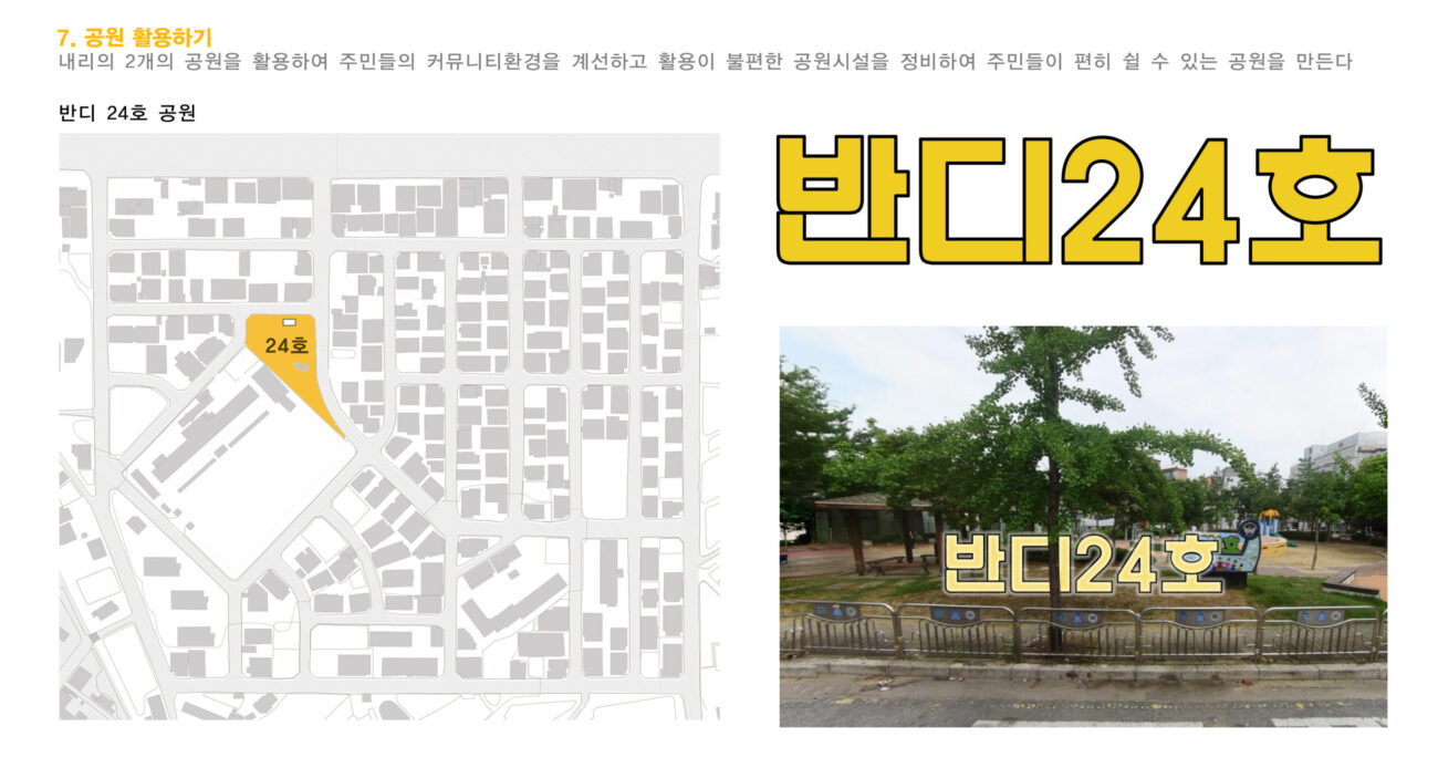 내방리는 외국인 주거율이 높고 동네가 정비되지 않은 특징을 가지고 있었기 때문에 다문화 주민들 간의 커뮤니티 형성과 어두운 환경을 밝힐 수 있는 계획을 중점으로 진행되었다.