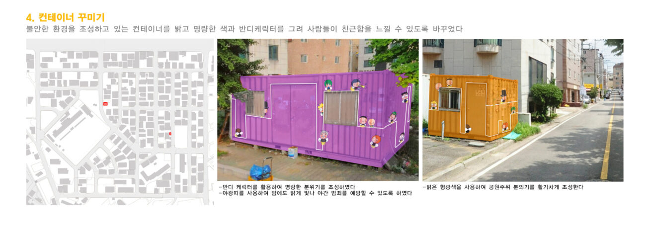 안성시에서 범죄율이 높은 지역 중 하나인 대덕면 내리의 범죄율을 낮추기 위해 안성 경찰서와 함께 진행한 프로젝트로 CPTED(범죄예방 환경설계)디자인을 활용하였다.