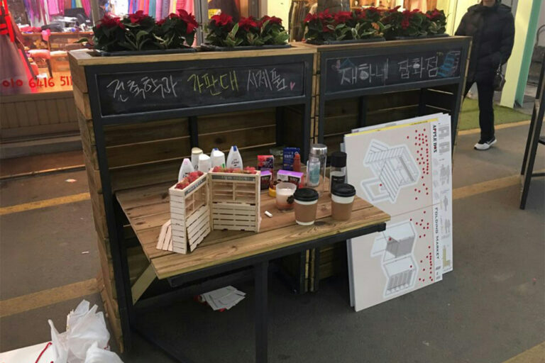 판매의 기능만 지니고 있는 기존의 가판대에서 시민 참여 프로그램을 설정하여 책상/의자 구조체를 계획하고, 최종적으로 박스형 모듈의 형태로 디자인하여 기능별로 사용 용도가 달라질 수 있게 하였다.