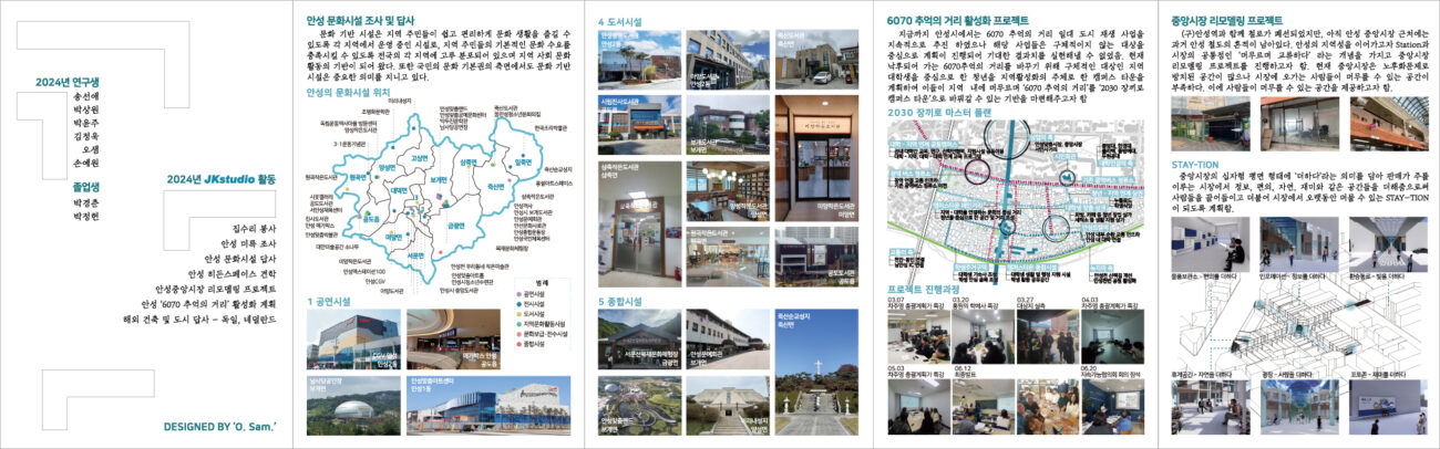 특히 올해에는 안성의 문화시설을 둘러보았고, 안성의 문화시설 및 미륵 유적지의 현황 조사 및 답사, 안성 중앙시장 공간 개선 계획, 안성 ‘6070 추억의 거리’ 활성화 계획, 도시 재생 해외 답사, 집수리 봉사 활동 등 다양한 프로젝트를 진행할 수 있었으며, 안성의 다양한 역사와 문화적 자산을 홍보하는 기념품 제작도 작년에 이어 계속하였습니다.
